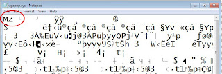 10. Open c:windowssystem32driversvgapnp.sys in any text editor. Remove the first character you put there which was x. Save the file. it should look like this before saving it (MZ — ignore other character)