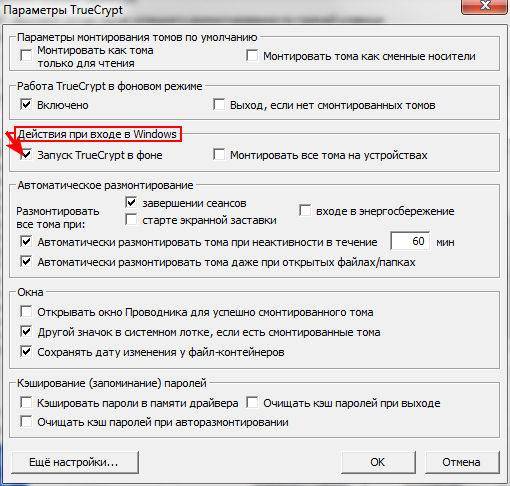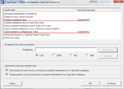 Как только создали том для базы данных Evernote и переместили её туда, идём в настройки горячих клавиш в TrueCrypt: