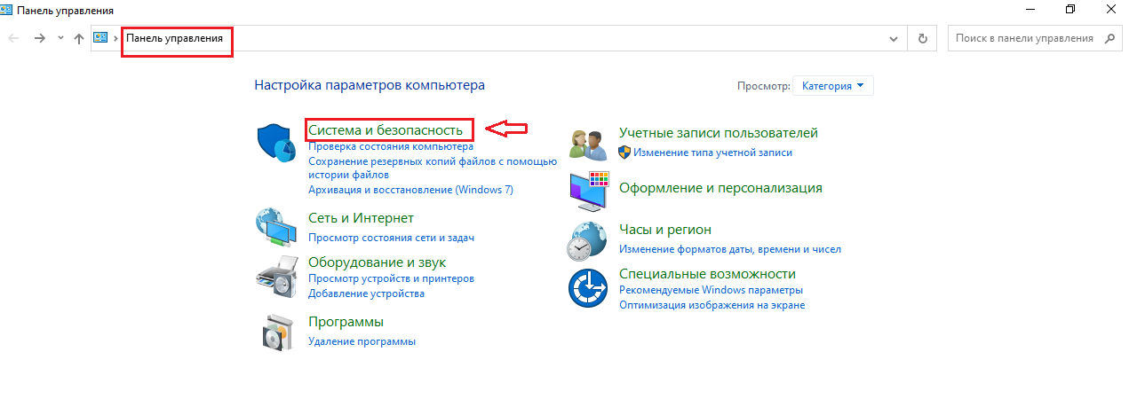 Можно, также открыть «Панель управления», выбрать «Система и безопасность»: