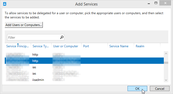 and the server SPN that we specified on the step above, then click