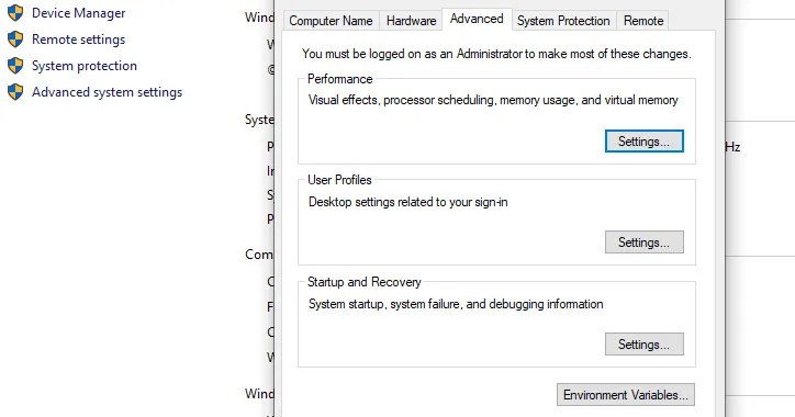 Now click the “Environmental Variables” button